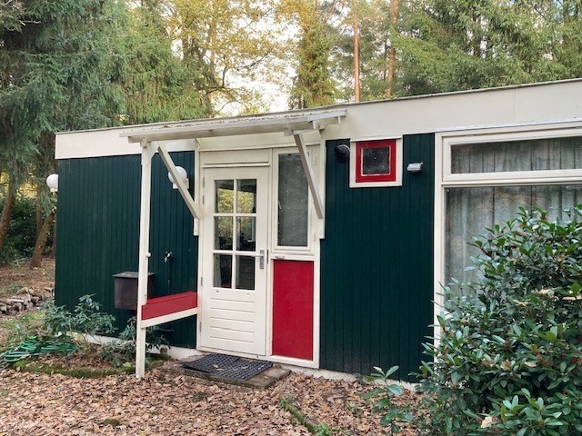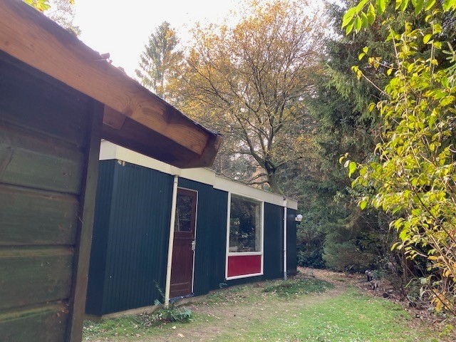 Op het kleinschalige recreatiepark De Driehoek, gelegen midden in de bossen van Ermelo, staat deze sfeervolle vrijstaande houten (red cedar) recreatiebungalow op een zeer ruime kavel van 1.021 m2 eigen grond.